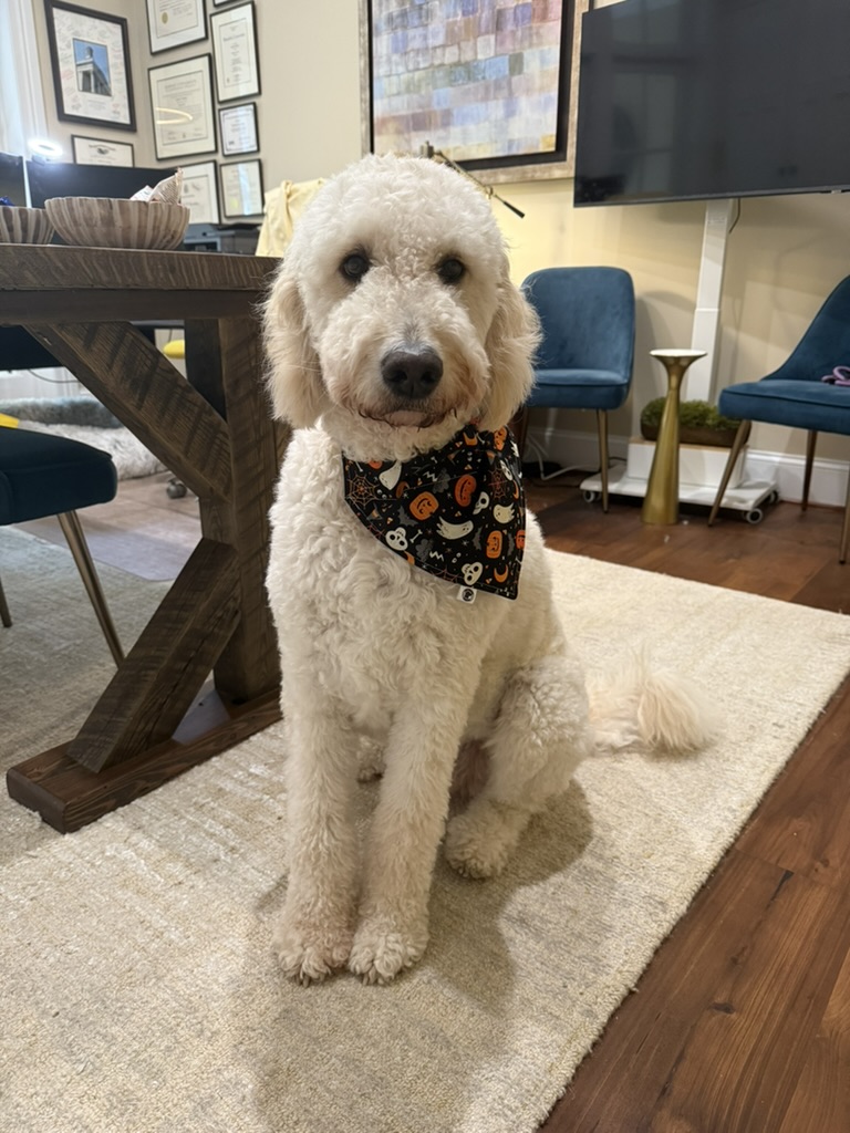 When not “on duty,” Juno enjoys long walks, naps in the middle of the office, and keeping her parents company in the kitchen in hopes that a rogue piece of dinner will fall on the ground. Whether offering a reassuring cuddle or a cheerful greeting, Juno is a gentle reminder that compassion and connection can help heal even the toughest conflicts.